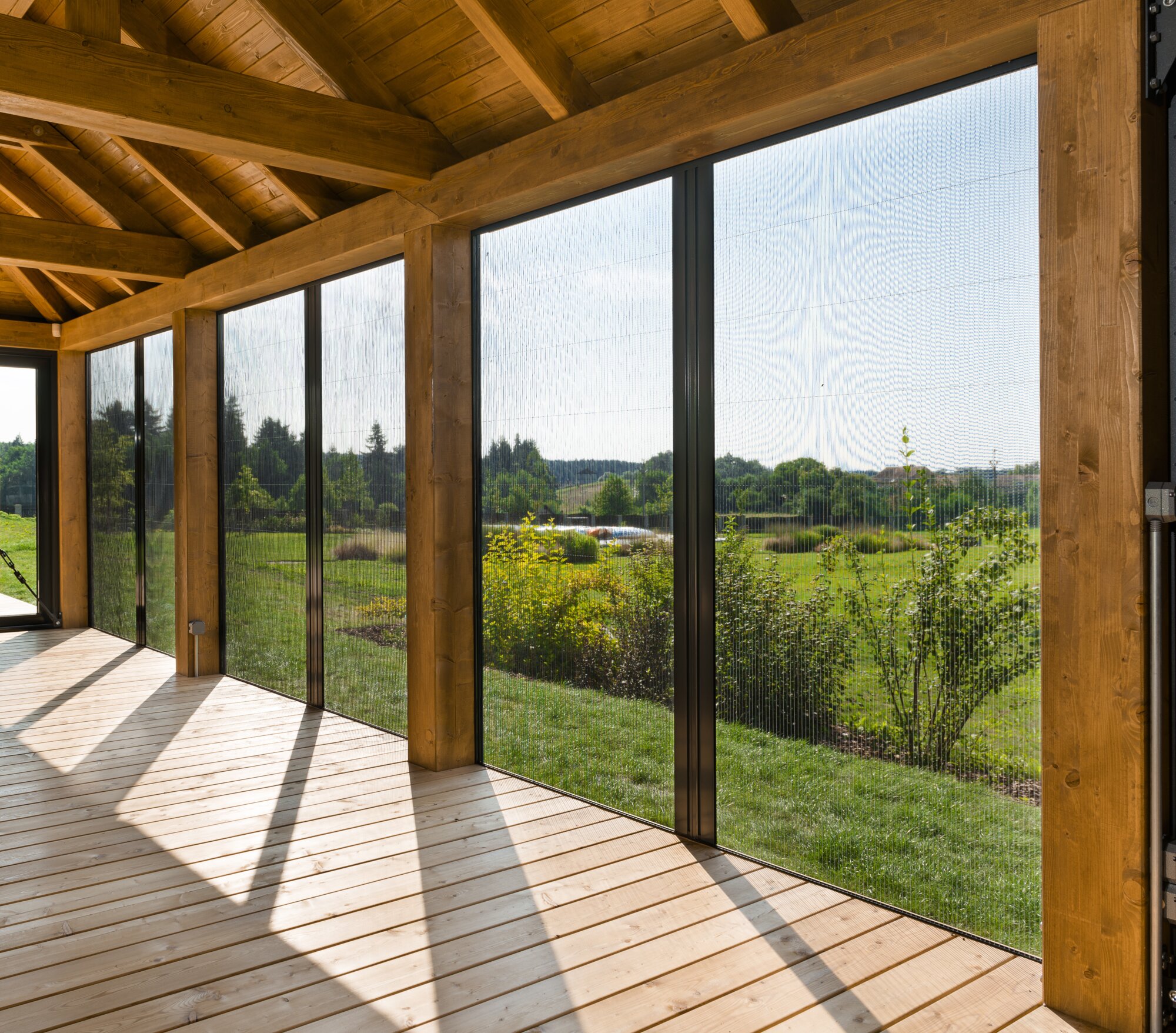 U dveří se síť pohybuje do strany a pro širší vstupy je k dispozici i dvoukřídlá varianta. U oken se naopak stahuje shora dolů a lze integrovat do roletového boxu.