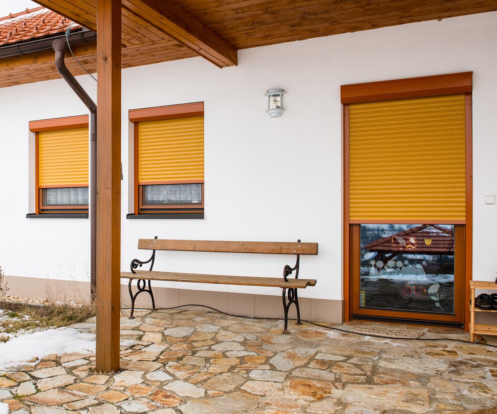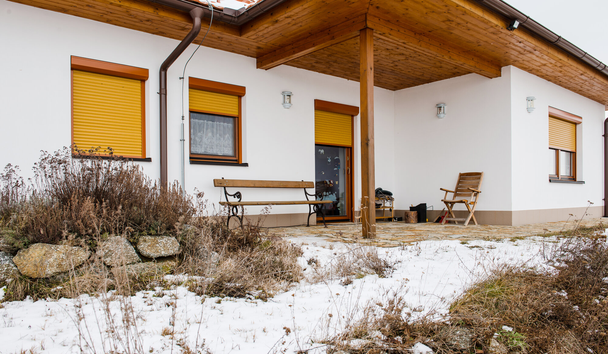 Majitelé hledali funkční venkovní stínění, které lze instalovat bez zásahu do fasády. Zvolili jsme předokenní rolety s přiznaným boxem, ideální pro dodatečnou montáž. Lamely rolet v dekoru světlého dubu dodávají bílé fasádě teplý, designový akcent. Hnědý box ladí s ostatními dřevěnými prvky domu a výsledkem je atraktivní vzhled, který kombinuje maximální komfort s estetickou hodnotou.