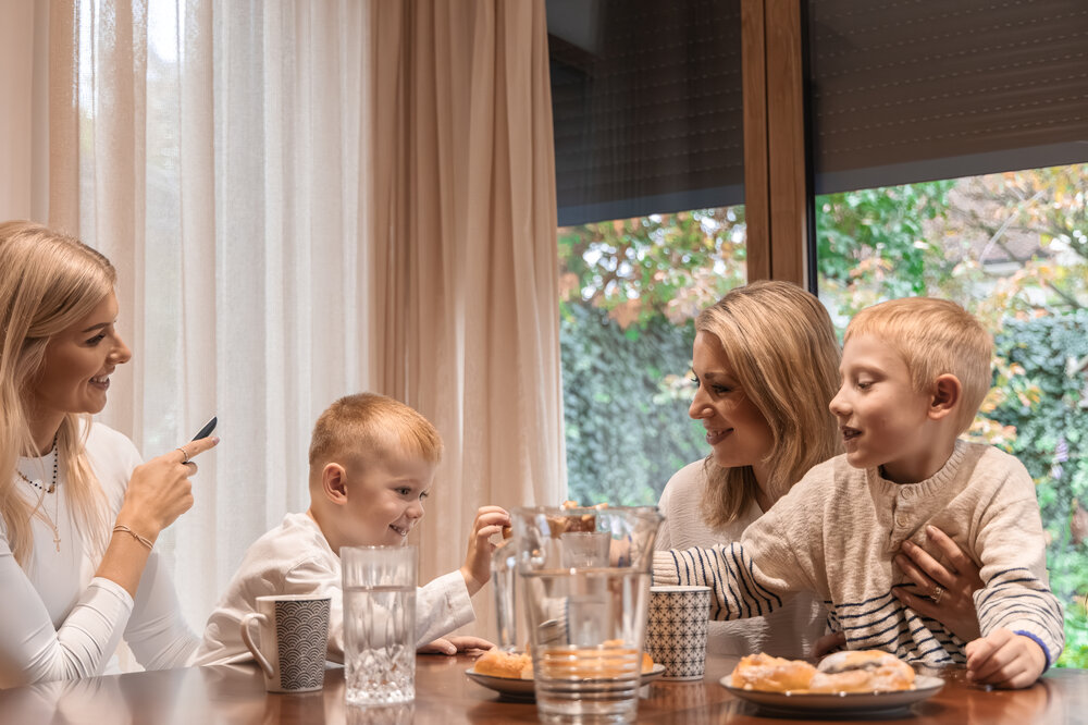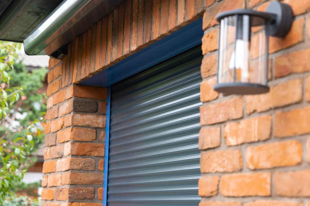 Na okna a balkonové dveře jsme navrhli a dodali rolety se zaomítacím boxem s elektrickým ovládáním. Domek má krásný přístup na terasu díky dvojici francouzských oken, umístěných vedle sebe. Pomocí hliníkových rolet mohou majitelé flexibilně regulovat světlo i ostré letní slunce, které velkým prosklením proniká dovnitř. Tak je možné udržet v jídelně a obývacím pokoji příjemnou teplotu i v parném létě. Zvolená modrá barva konstrukce rolet dokonale ladí s cihlovou fasádou a vizuálně rozjasnila celý dům.