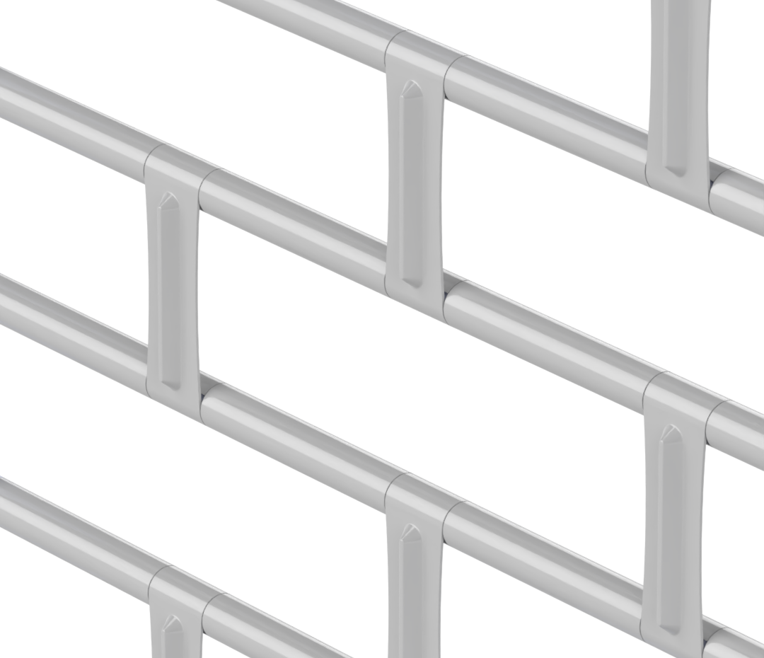 Ocelová mřížová výplň z podélných kulatin ve tvaru vlny - v barvě stříbrná pozinkovaná ocel.