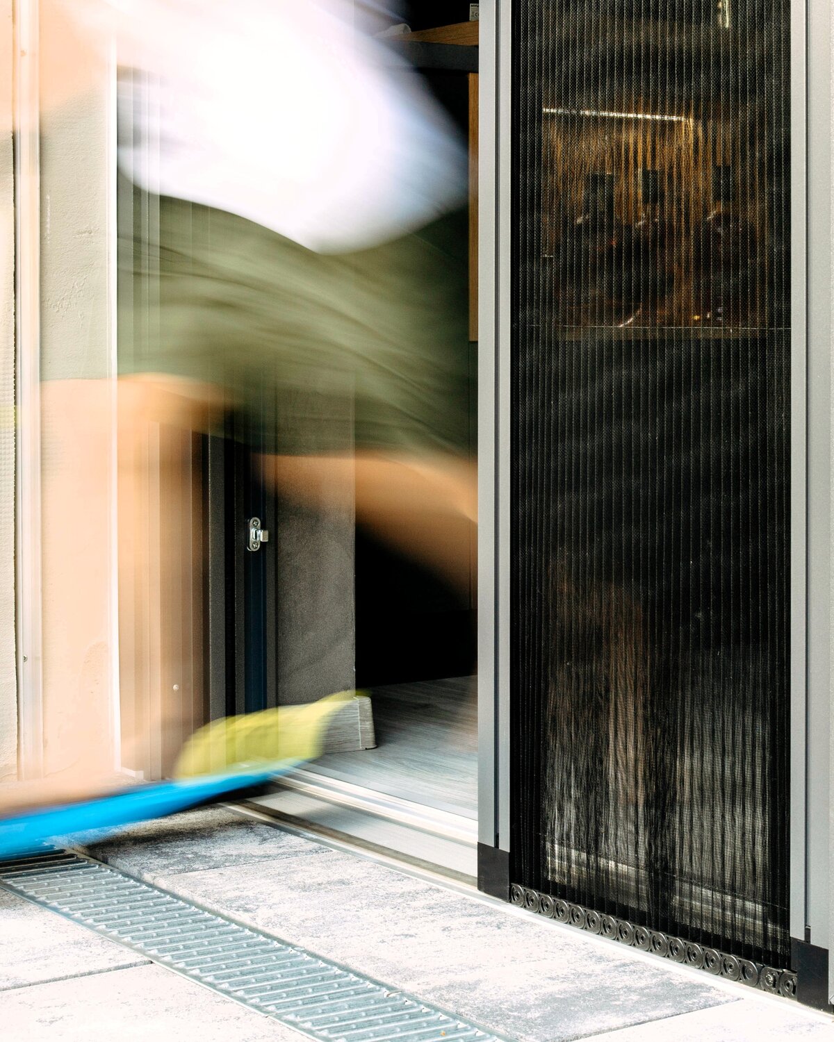 Používá se často pro velkoformátové posuvné dveře, vstup na terasu nebo balkón.